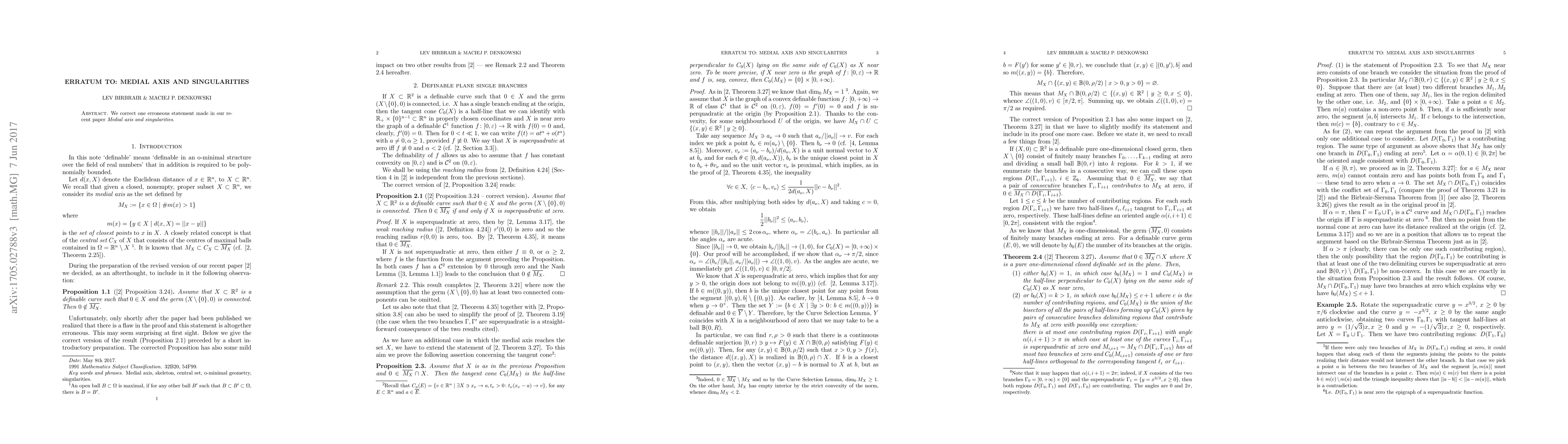 We correct one erroneous statement made in our recent paper "Medial axis and singularities".