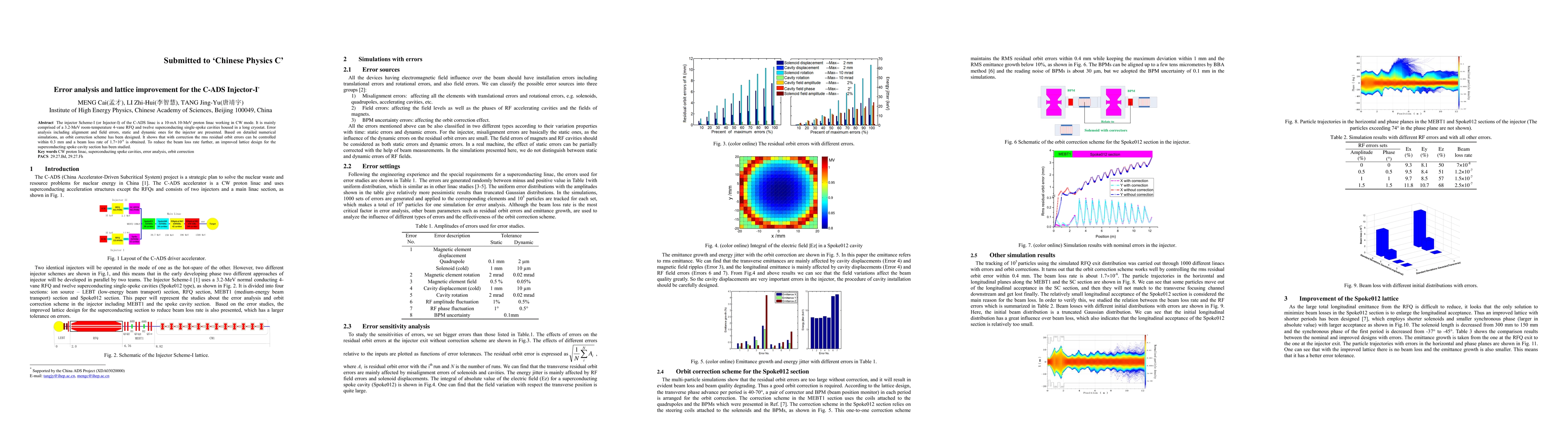 This paper analyzes errors in the C-ADS Injector-I, a continuous-wave 10-mA 10-MeV proton linac, focusing on alignment and field errors. An orbit correction scheme based on numerical simulations reduces rms residual orbit errors to 0.3 mm and achieves a beam loss rate of 1.7 x 10^-6, with further improvements proposed for the superconducting cavity section.
