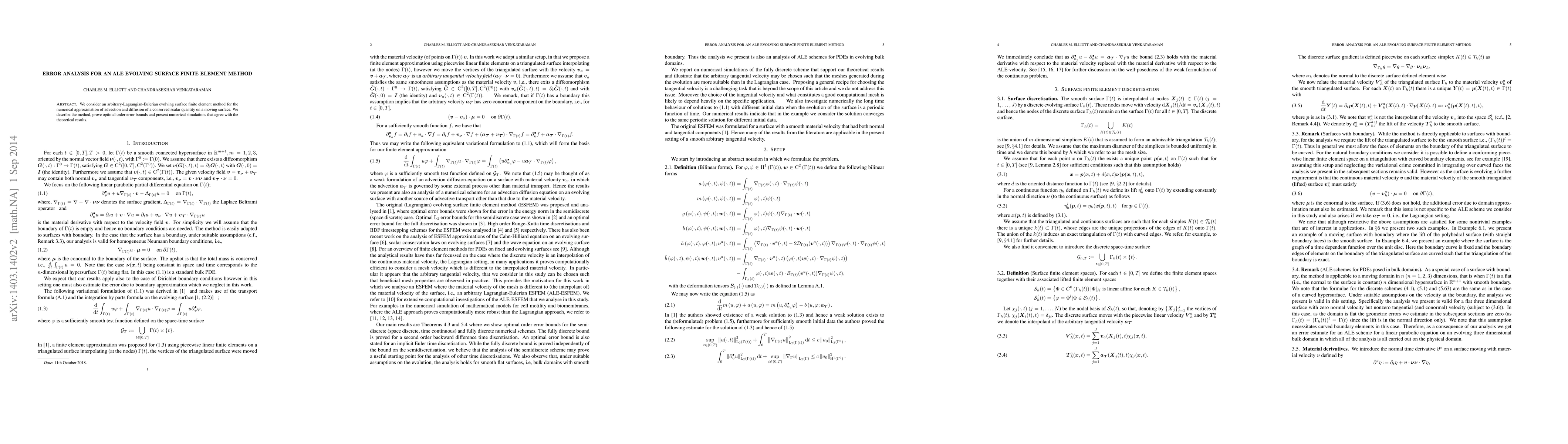 This paper presents an ALE evolving surface finite element method for advection and diffusion problems on moving surfaces, proving optimal error bounds and validating the method through simulations. The results align with theoretical predictions.