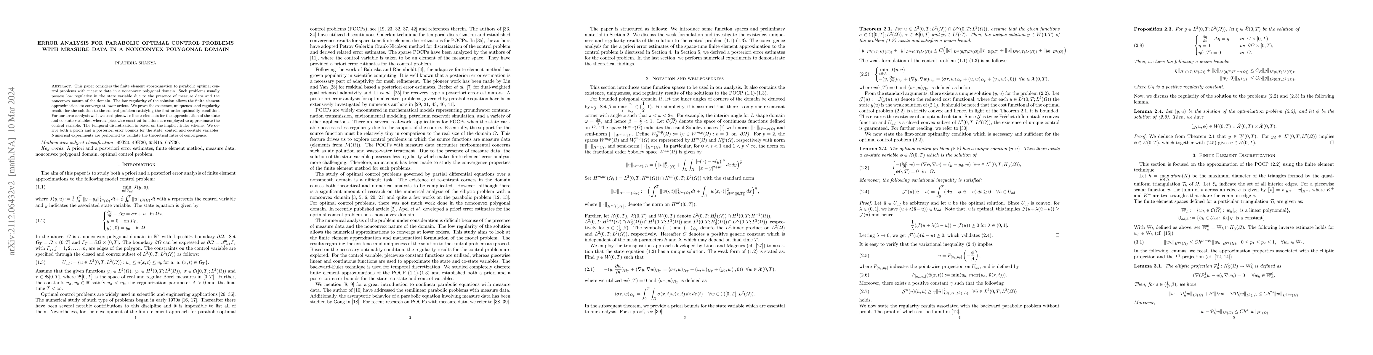 This paper studies finite element approximations for parabolic optimal control problems in nonconvex polygonal domains, demonstrating lower convergence rates due to low regularity. It derives a priori and a posteriori error bounds and validates them with numerical experiments.