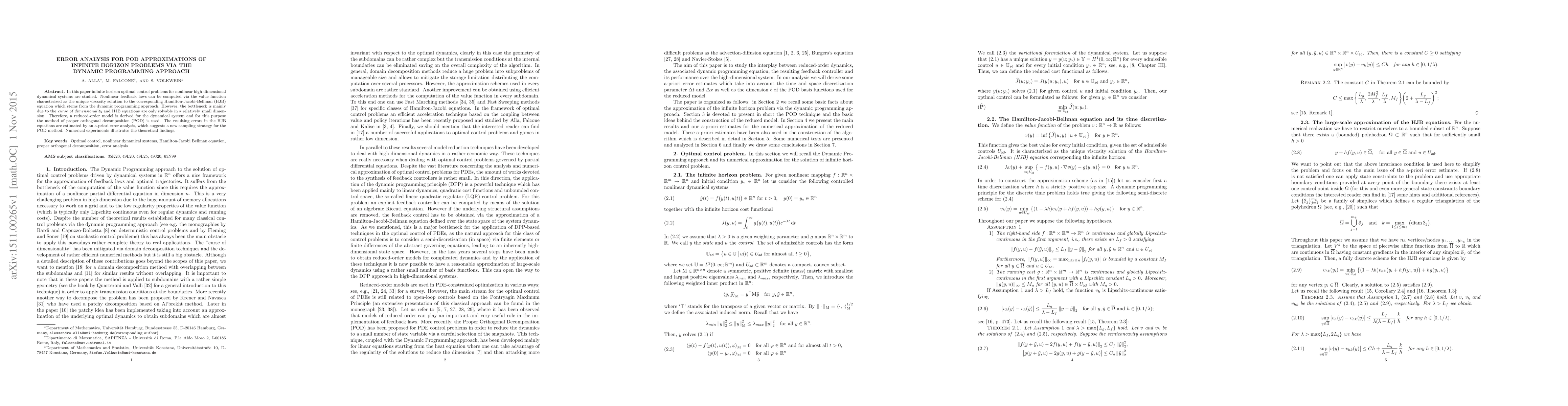 This paper studies infinite horizon optimal control problems for high-dimensional nonlinear systems, employing dynamic programming and the Hamilton-Jacobi-Bellman equation. To address the curse of dimensionality, a reduced-order model using proper orthogonal decomposition (POD) is developed, and an a-priori error analysis estimates the resulting errors in the HJBEs, proposing a new sampling strategy. Numerical experiments validate the theoretical results.