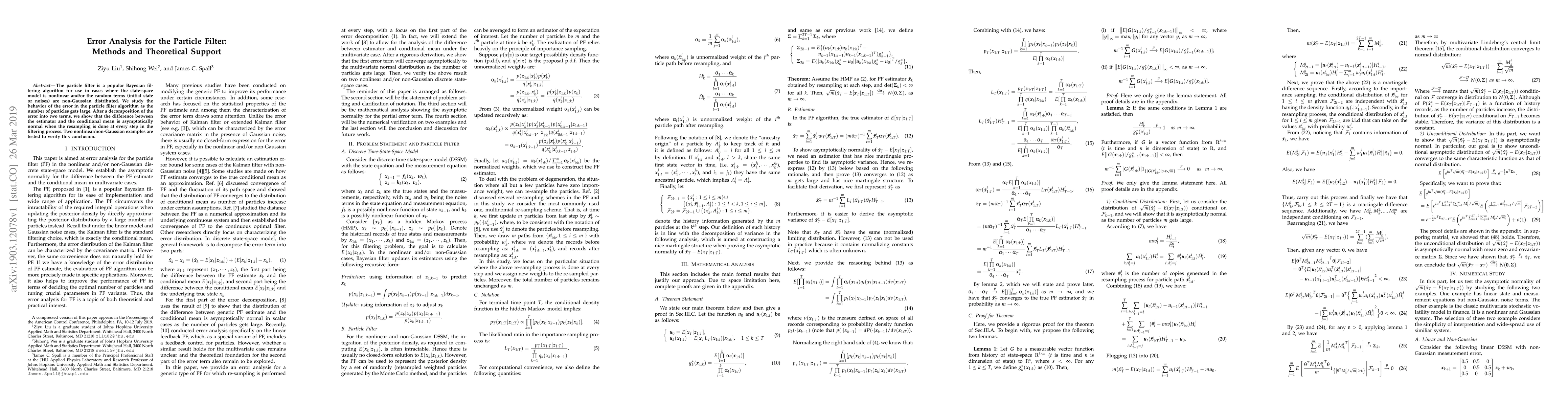 The particle filter algorithm's error is analyzed as the number of particles increases, showing that it becomes asymptotically normal under certain conditions, providing a theoretical basis for its performance.