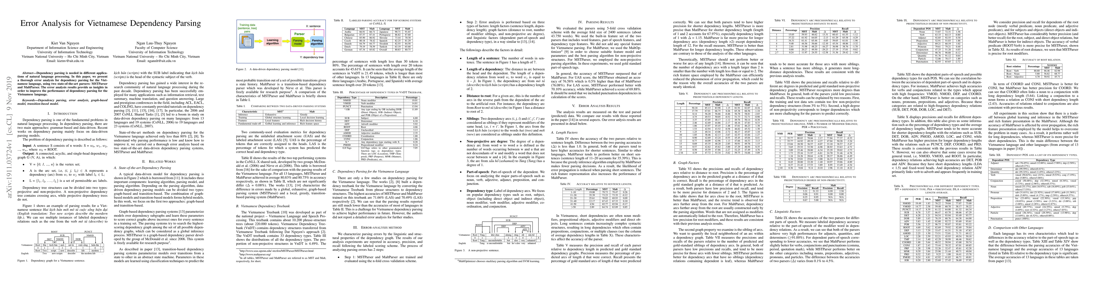 This paper conducts a detailed error analysis of Vietnamese dependency parsing using MSTParser and MaltParser, aiming to identify weaknesses and propose improvements for better performance in natural language processing applications. Insights from the analysis offer directions for enhancing Vietnamese dependency parsing models.