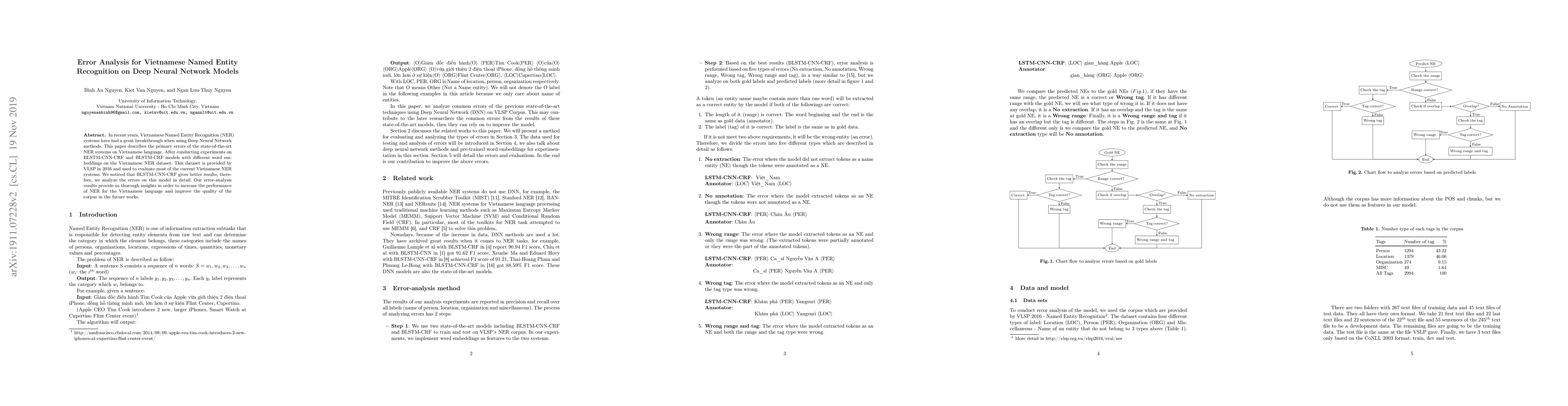 In recent years, Vietnamese Named Entity Recognition (NER) systems have had a great breakthrough when using Deep Neural Network methods. This paper describes the primary errors of the state-of-the-art NER systems on Vietnamese language. After conducting experiments on BLSTM-CNN-CRF and BLSTM-CRF models with different word embeddings on the Vietnamese NER dataset. This dataset is provided by VLSP in 2016 and used to evaluate most of the current Vietnamese NER systems. We noticed that BLSTM-CNN-CRF gives better results, therefore, we analyze the errors on this model in detail. Our error-analysis results provide us thorough insights in order to increase the performance of NER for the Vietnamese language and improve the quality of the corpus in the future works.