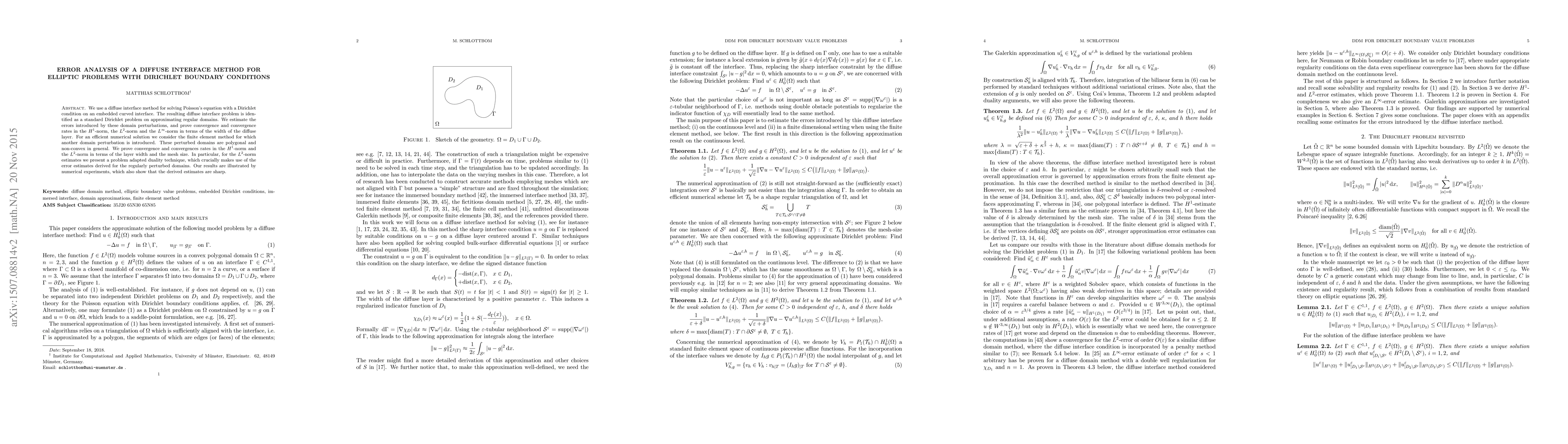 This paper analyzes errors in a diffuse interface method for elliptic problems, specifically solving Poisson's equation with Dirichlet conditions on curved interfaces. It proves convergence and error rates in various norms, considering both domain perturbations and finite element discretizations, and validates results with numerical experiments.