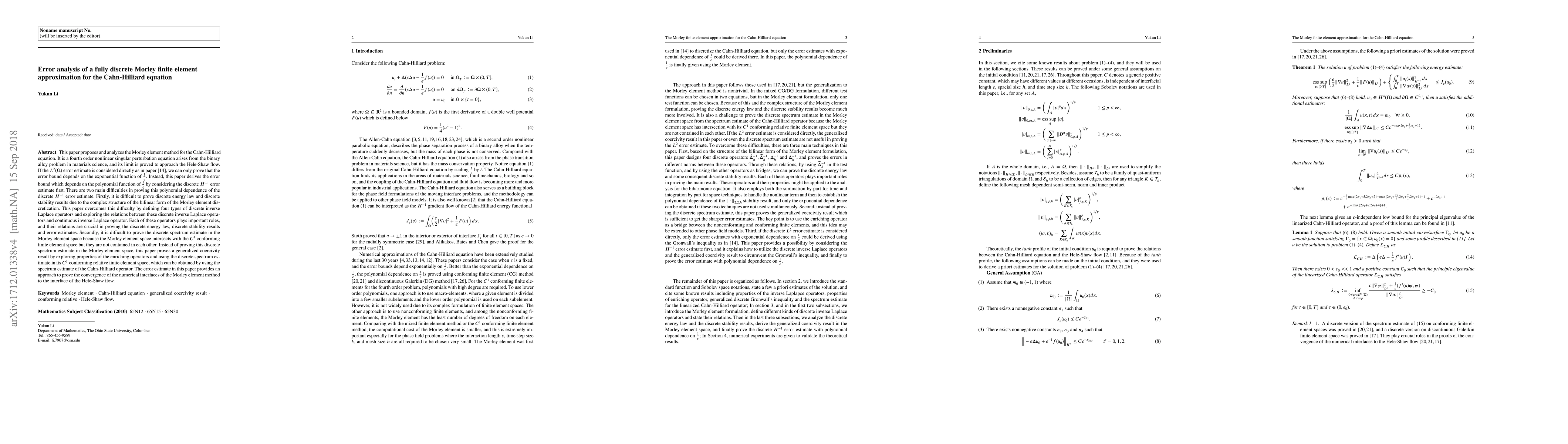 This paper analyzes the Morley element method for the Cahn-Hilliard equation, deriving a polynomial error bound instead of an exponential one. It overcomes challenges in proving discrete energy law and stability by defining discrete inverse Laplace operators and proving a generalized coercivity result.