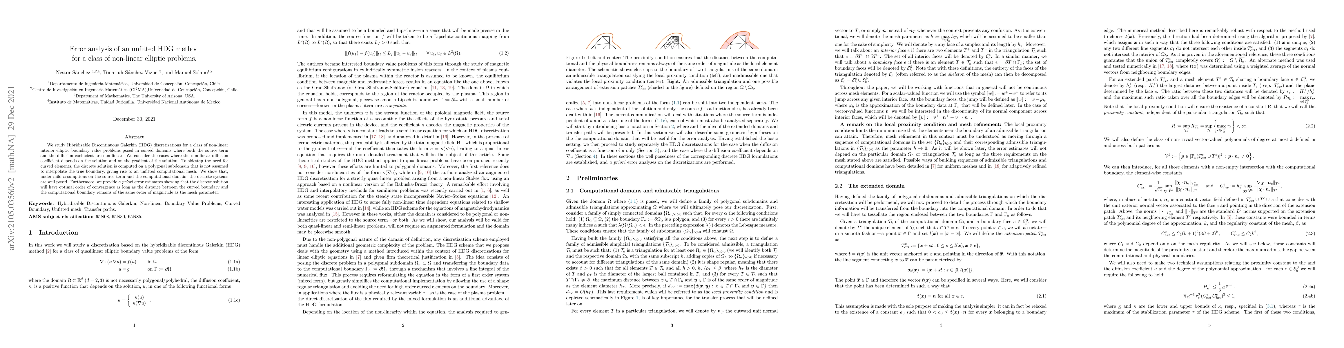 This paper investigates the error analysis of an unfitted HDG method for solving non-linear elliptic problems in curved domains. It demonstrates that the method maintains optimal convergence rates provided the computational mesh approximates the true boundary sufficiently well.