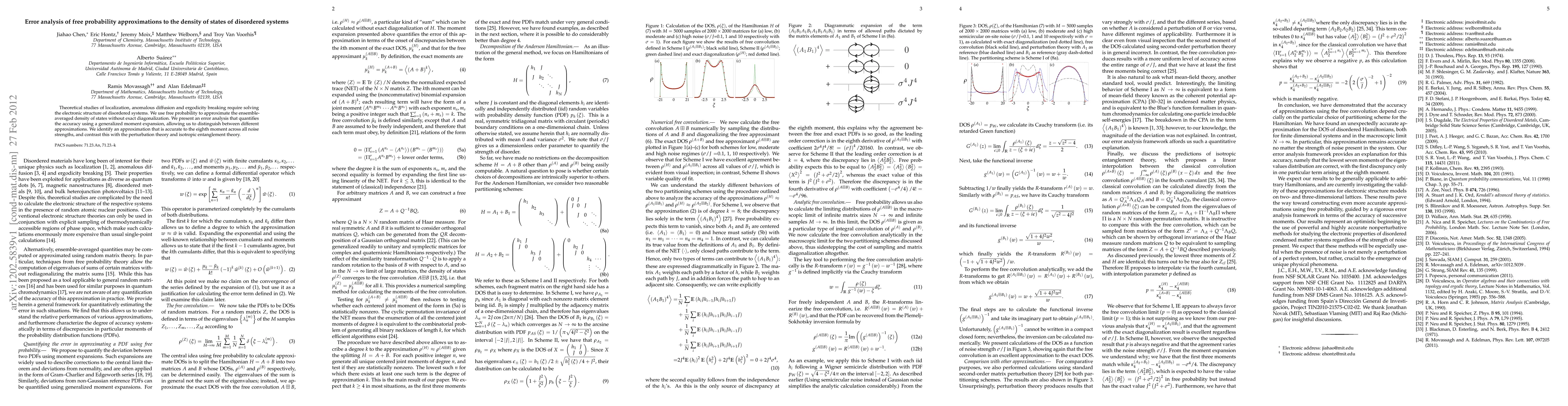 Theoretical studies of localization, anomalous diffusion and ergodicity breaking require solving the electronic structure of disordered systems. We use free probability to approximate the ensemble- averaged density of states without exact diagonalization. We present an error analysis that quantifies the accuracy using a generalized moment expansion, allowing us to distinguish between different approximations. We identify an approximation that is accurate to the eighth moment across all noise strengths, and contrast this with the perturbation theory and isotropic entanglement theory.