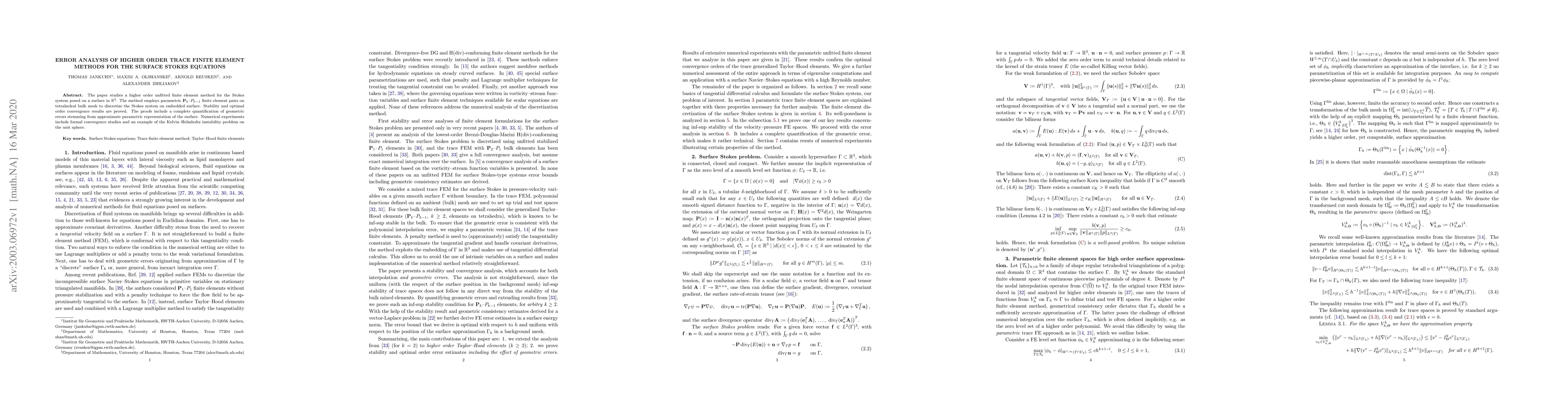 This paper investigates a higher order unfitted finite element method for the surface Stokes equations, employing generalized Taylor-Hood pairs on tetrahedral meshes. It proves stability and optimal convergence, quantifying geometric errors from surface approximations, and validates the method through numerical convergence studies and an example of the Kelvin-Helmholtz instability.