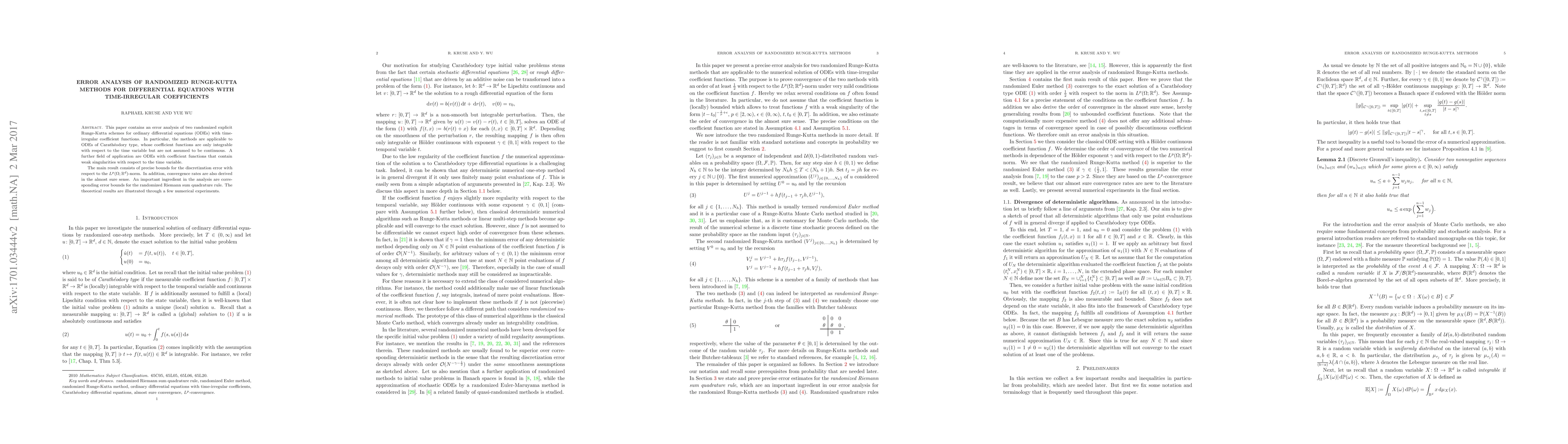This paper analyzes the error of randomized Runge-Kutta methods for solving differential equations with irregular time-dependent coefficients, providing precise bounds for discretization error and almost sure convergence rates.