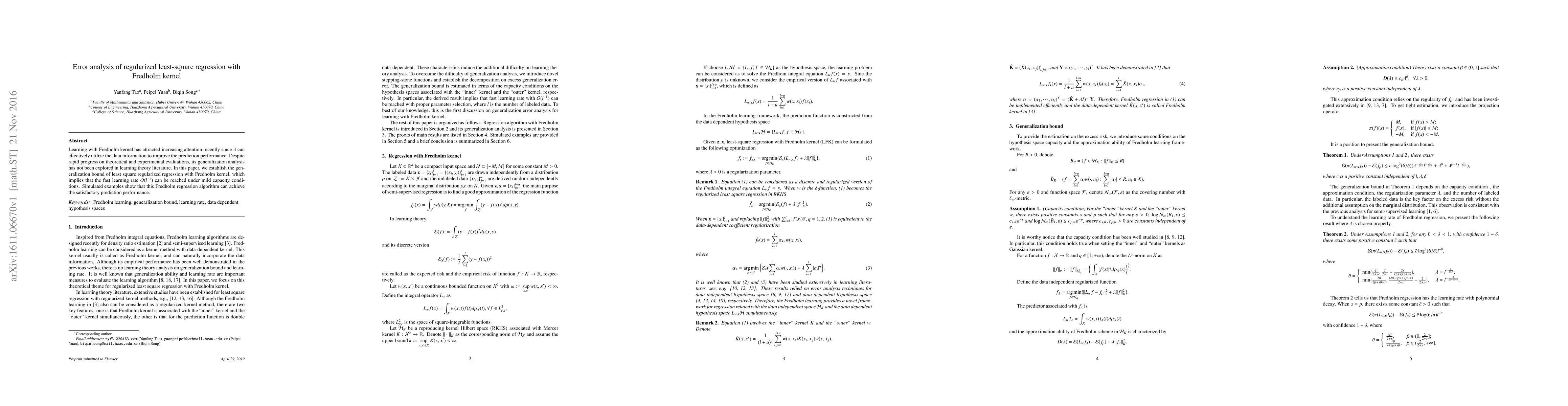 This paper establishes the generalization bound for regularized least-square regression using Fredholm kernels, demonstrating that it can achieve a fast learning rate of O(l^{-1}) under mild capacity conditions. Simulated results confirm the satisfactory prediction performance of the proposed Fredholm regression algorithm.