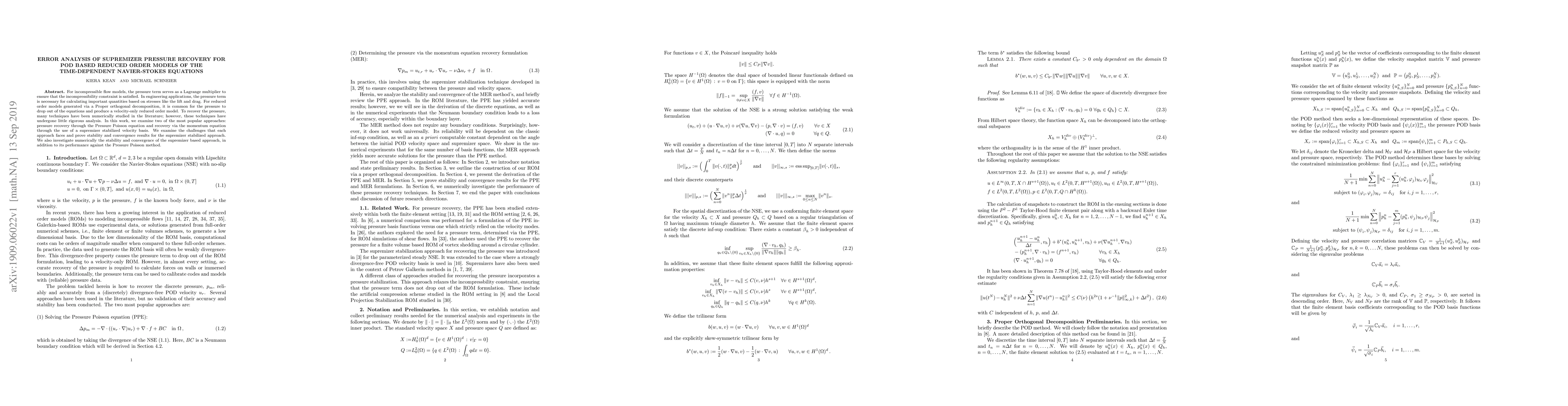 Researchers analyze two methods to recover pressure in reduced-order Navier-Stokes models, finding that one approach outperforms the others in terms of stability and convergence.