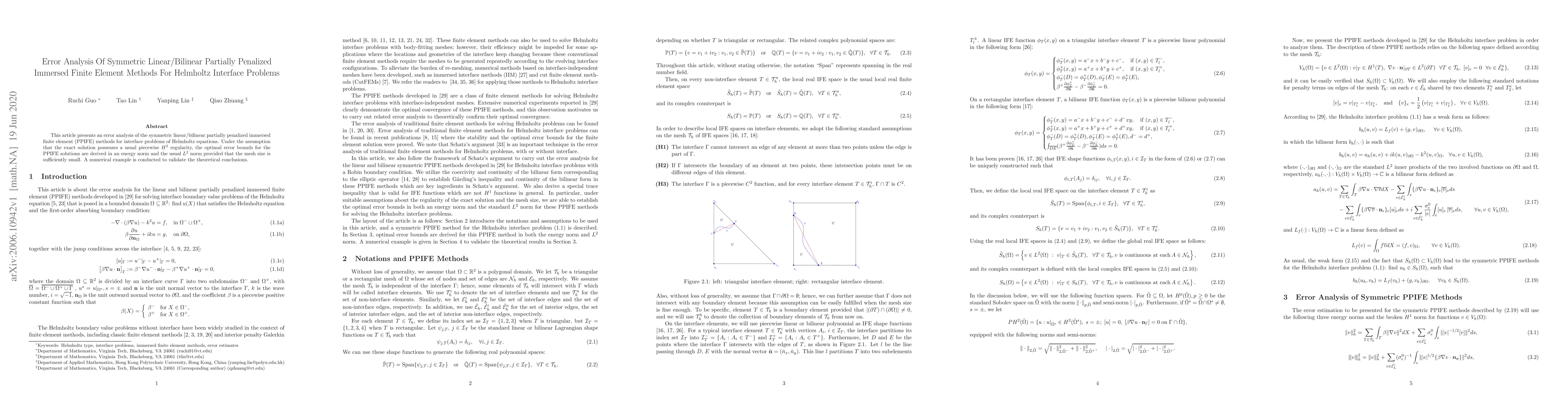 This paper analyzes the error bounds for symmetric linear/bilinear PPIFE methods applied to Helmholtz interface problems, deriving optimal error bounds in energy and $L^2$ norms under certain regularity assumptions. A numerical example confirms the theoretical findings.