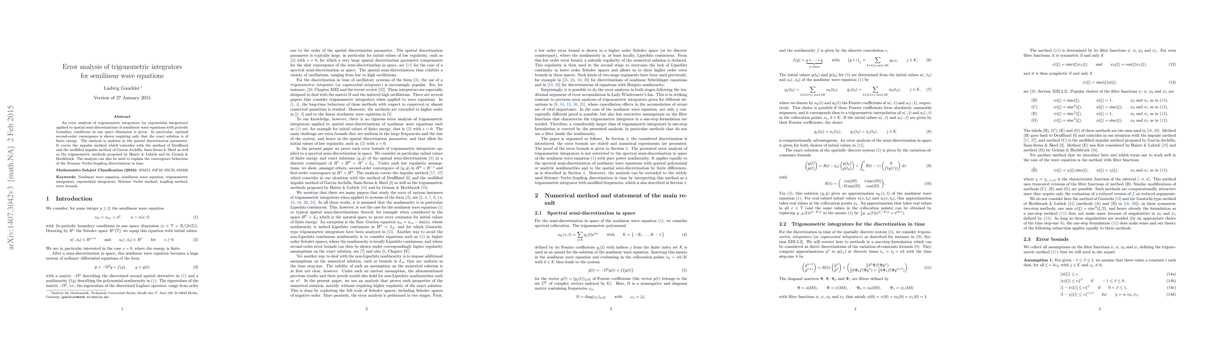 This paper provides an error analysis for trigonometric integrators applied to semilinear wave equations, demonstrating optimal second-order convergence uniformly in spatial discretization. The analysis covers various methods and explains the convergence behavior of the Størmer-Verlet/leapfrog method.