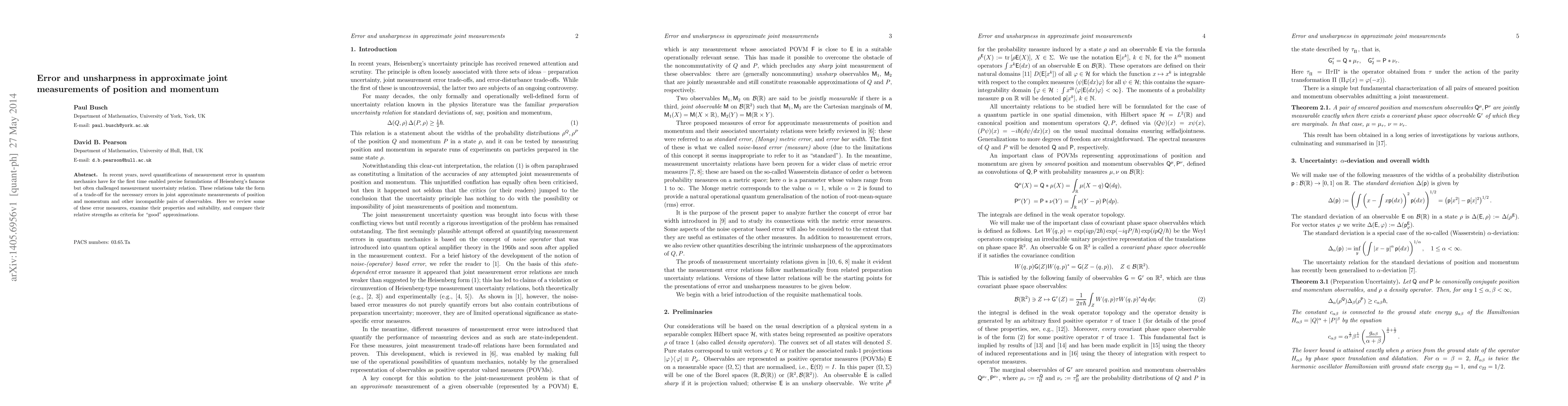 This paper reviews recent advancements in quantifying measurement error in quantum mechanics, focusing on the trade-offs involved in joint approximate measurements of position and momentum. It examines various error measures and assesses their effectiveness in evaluating the quality of such approximations.