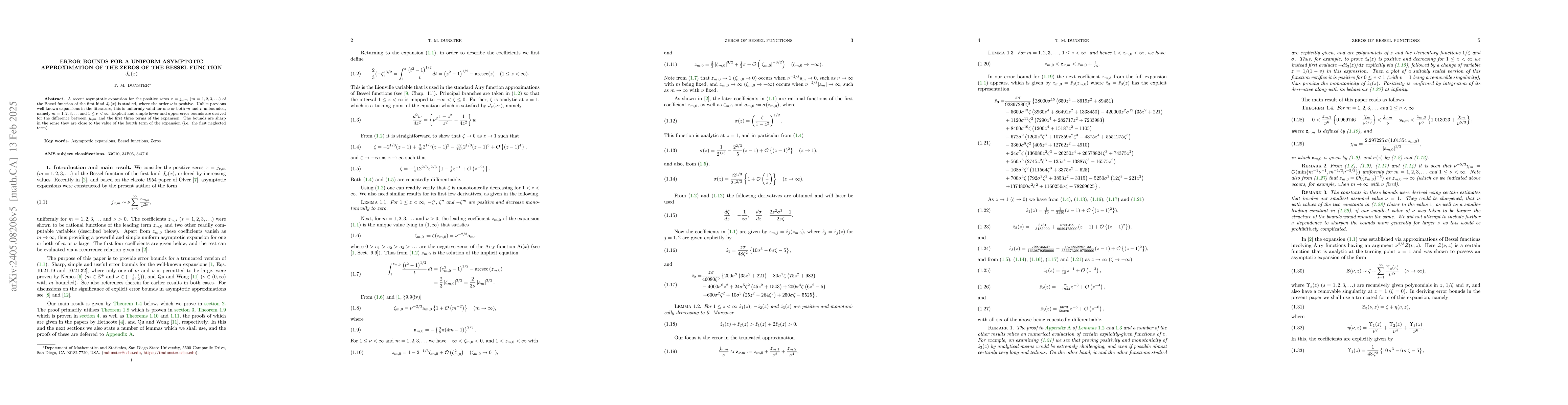 This paper derives explicit error bounds for a new uniformly valid asymptotic expansion of the positive zeros of the Bessel function $J_{\nu}(x)$, showing it holds for large orders $\nu$ and zeros $m$. The error bounds are sharp, closely approximating the first neglected term of the expansion.