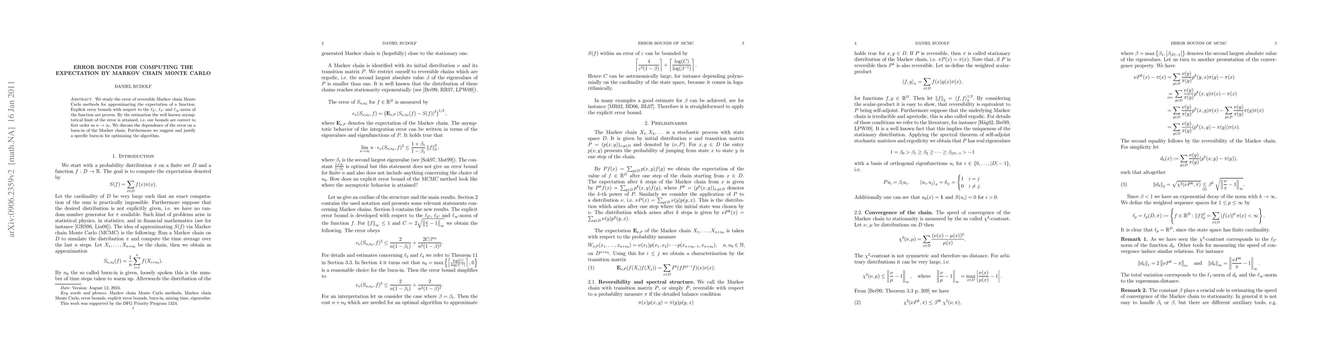 The paper studies error bounds for reversible Markov Chain Monte Carlo (MCMC) methods in approximating the expectation of a function, providing explicit bounds with respect to different norms of the function.