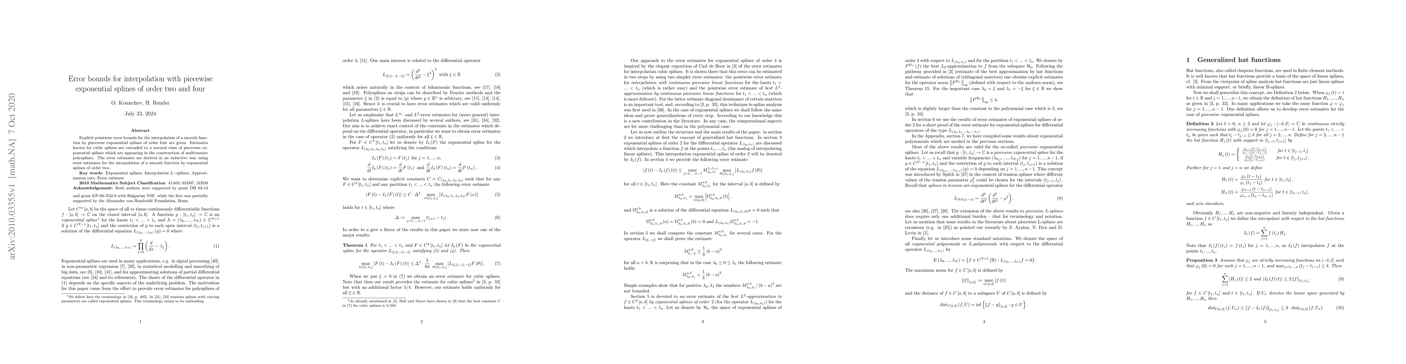 Explicit pointwise error bounds for the interpolation of a smooth function by piecewise exponential splines of order four are given. Estimates known for cubic splines are extended to a natural class of piecewise exponential splines which are appearing in the construction of multivariate polysplines. The error estimates are derived in an inductive way using error estimates for the interpolation of a smooth function by exponential splines of order two.