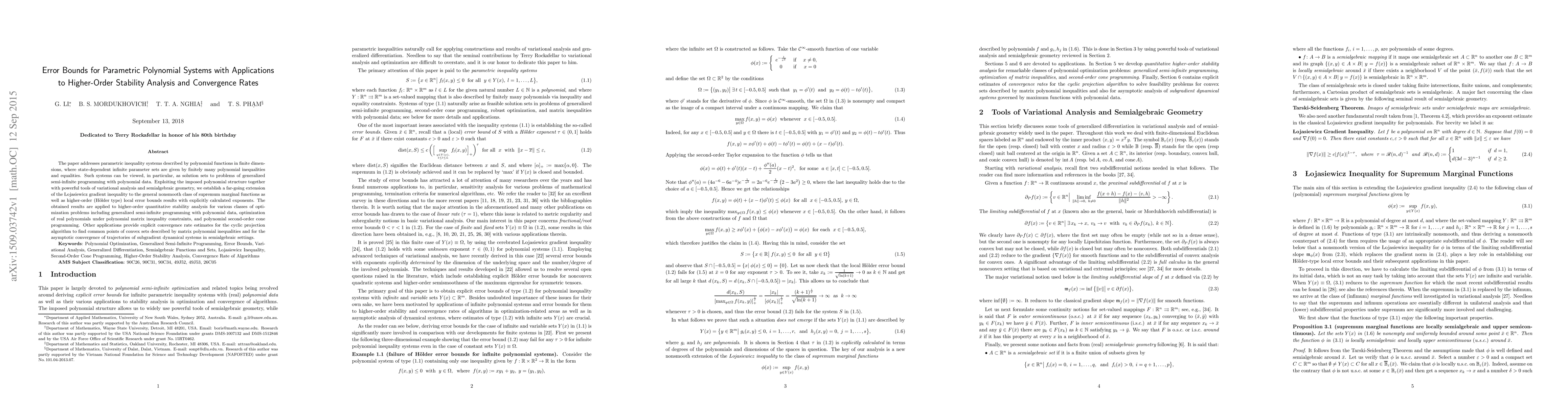 The paper establishes higher-order error bounds for parametric polynomial systems using variational analysis and semialgebraic geometry, extending the \L ojasiewicz gradient inequality and providing applications to stability analysis and convergence rate estimates in optimization problems.