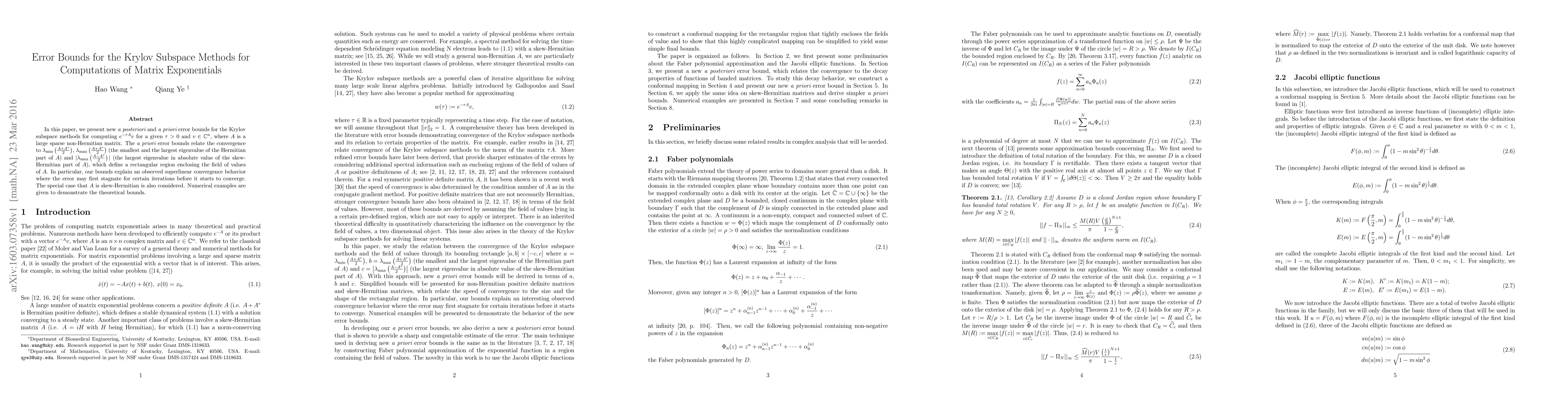 This paper presents new error bounds for Krylov subspace methods to compute matrix exponentials, explaining superlinear convergence behavior and providing a rectangular region of convergence based on eigenvalues of the matrix.