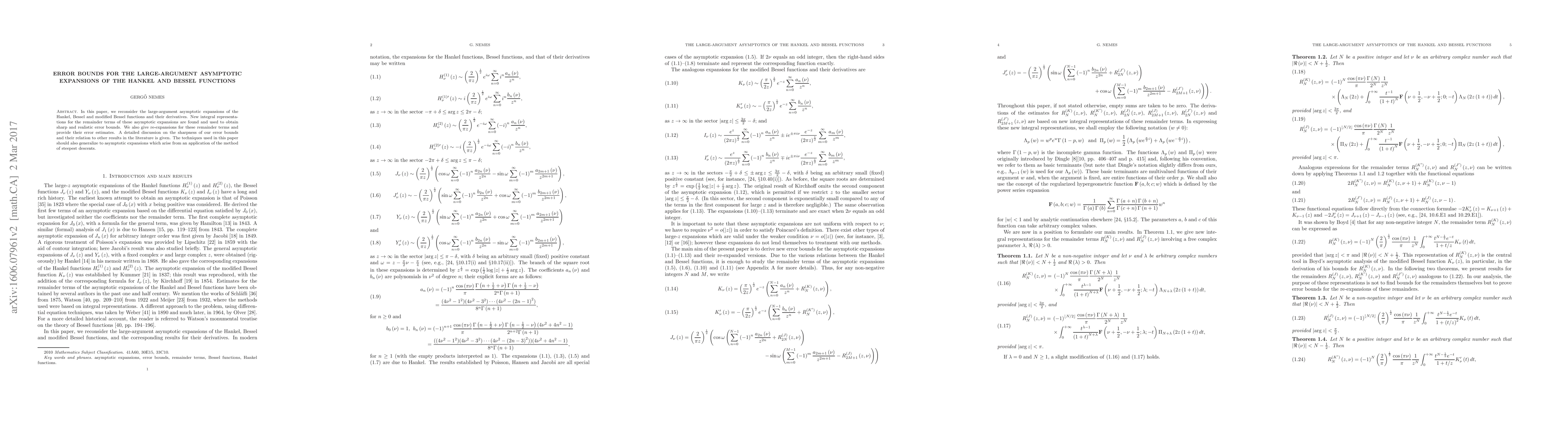 This paper develops new integral representations for the remainder terms in large-argument asymptotic expansions of Hankel, Bessel, and modified Bessel functions, providing sharp error bounds and re-expansions for these remainders. The techniques are shown to generalize to expansions from the method of steepest descents.