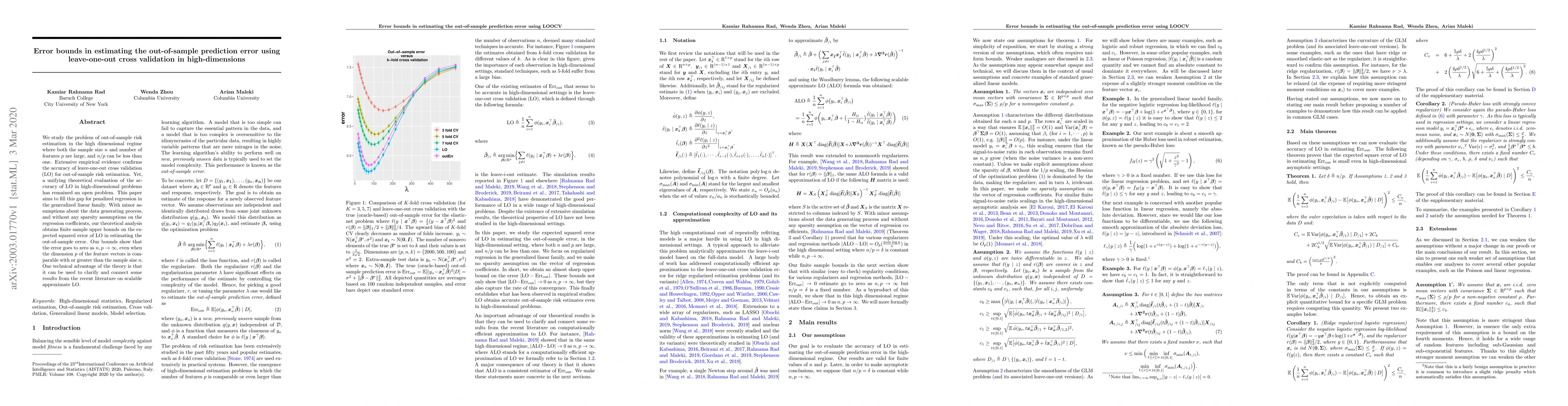 The paper establishes theoretical bounds on the accuracy of leave-one-out cross-validation for out-of-sample risk estimation in high-dimensional problems, showing that error rates approach zero as sample size increases.