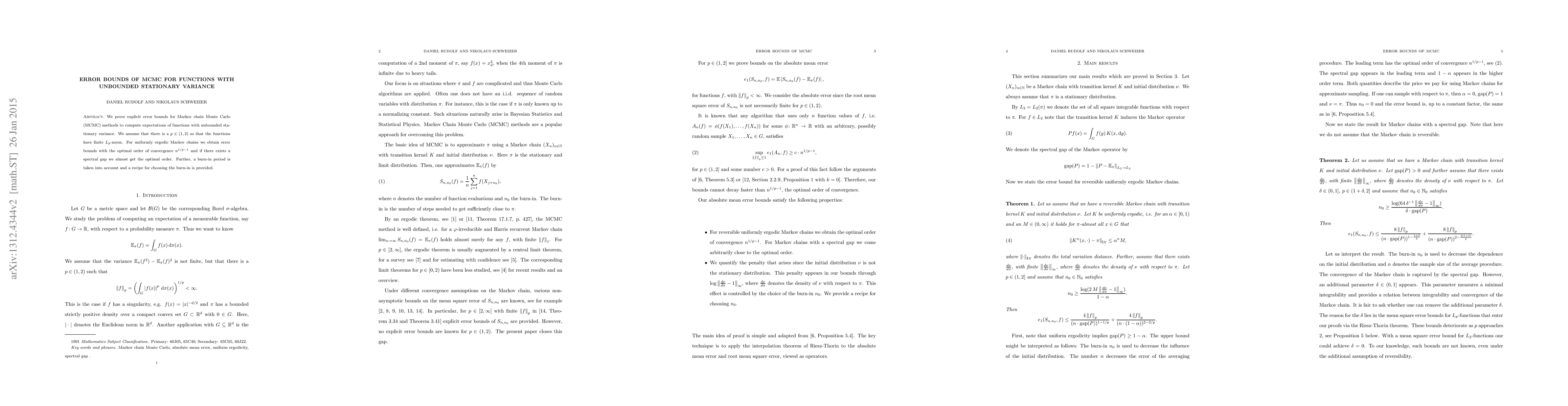 This paper establishes explicit error bounds for Markov chain Monte Carlo methods to estimate expectations of functions with unbounded stationary variance, achieving optimal convergence order $n^{1/p-1}$ under certain conditions.