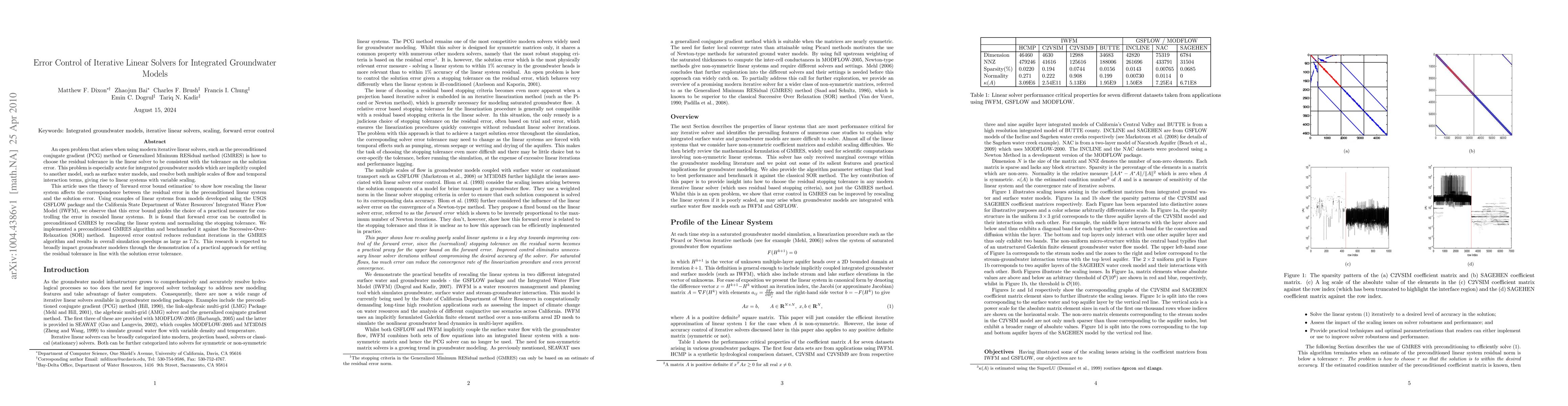This research paper demonstrates a practical approach to controlling error in iterative linear solvers used for integrated groundwater models, achieving 7.7x simulation speedups.