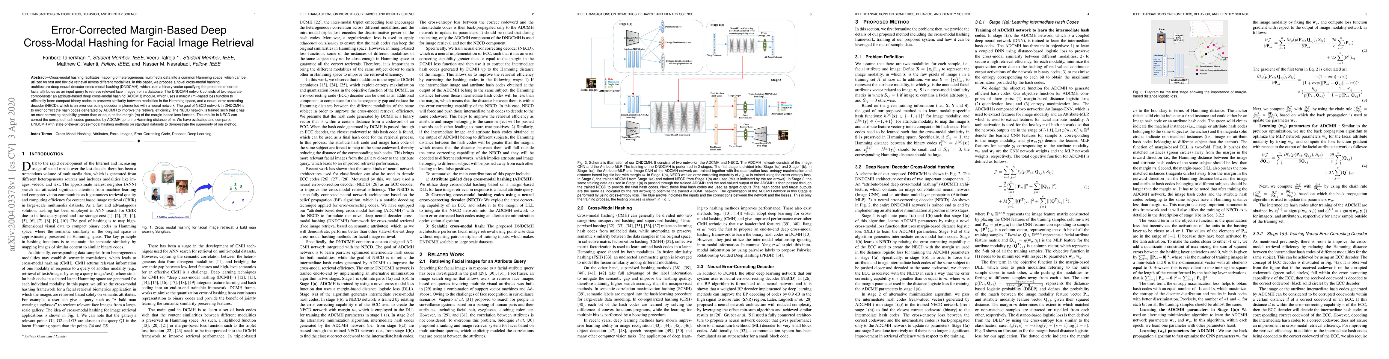 This paper proposes DNDCMH, a novel cross-modal hashing architecture that uses a deep neural decoder for error correction to enhance facial image retrieval. The architecture combines an attribute-based module with a neural error-correcting decoder to generate and correct compact binary codes, improving retrieval efficiency.