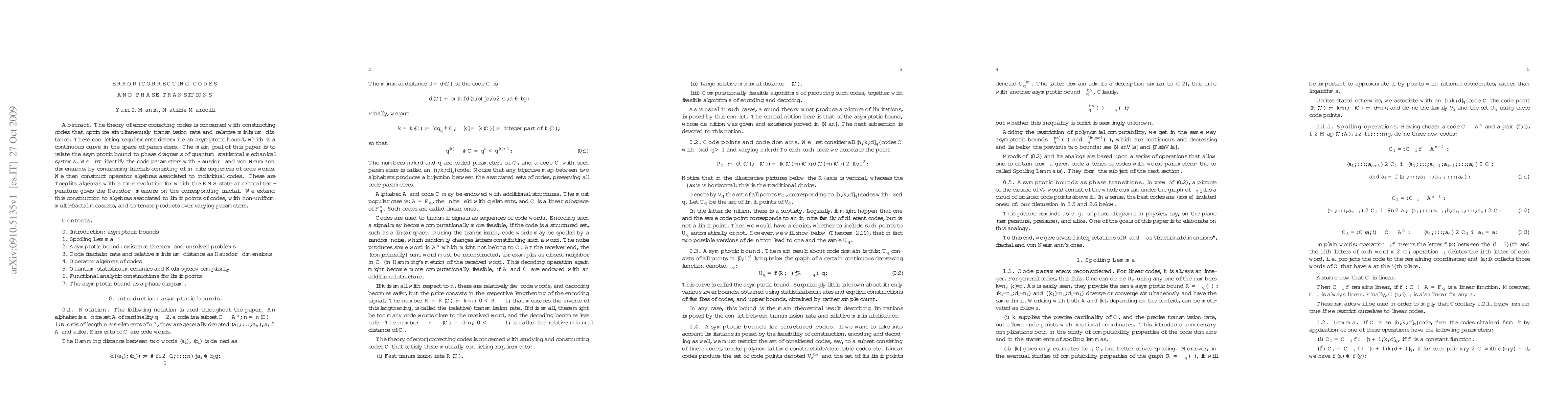 The theory of error-correcting codes is concerned with constructing codes that optimize simultaneously transmission rate and relative minimum distance. These conflicting requirements determine an asymptotic bound, which is a continuous curve in the space of parameters. The main goal of this paper is to relate the asymptotic bound to phase diagrams of quantum statistical mechanical systems. We first identify the code parameters with Hausdorff and von Neumann dimensions, by considering fractals consisting of infinite sequences of code words. We then construct operator algebras associated to individual codes. These are Toeplitz algebras with a time evolution for which the KMS state at critical temperature gives the Hausdorff measure on the corresponding fractal. We extend this construction to algebras associated to limit points of codes, with non-uniform multi-fractal measures, and to tensor products over varying parameters.