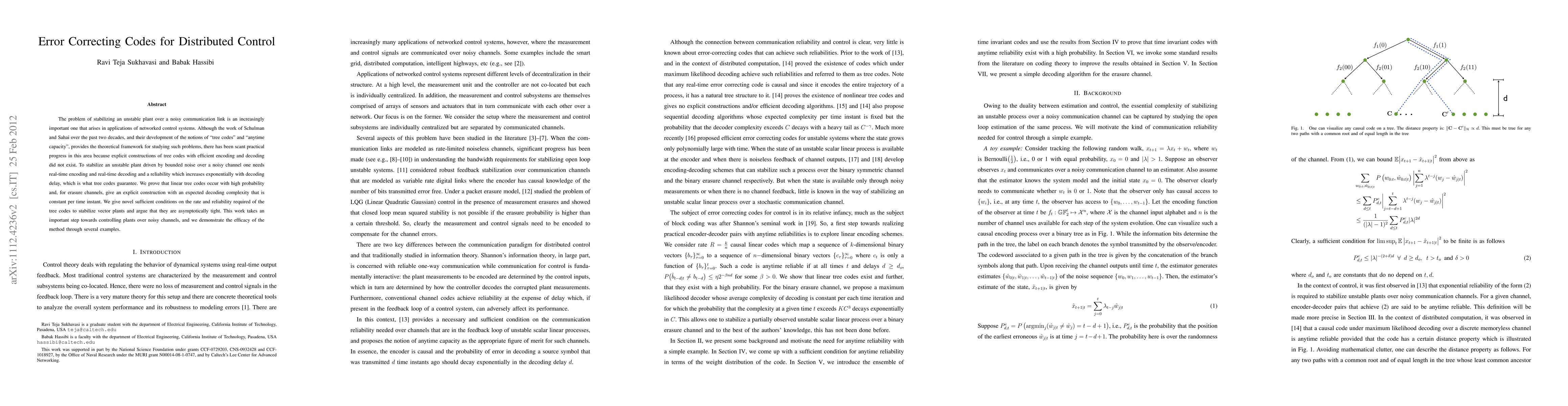 Researchers developed a new method for stabilizing unstable plants over noisy communication links using error-correcting codes, achieving high probability of success and efficient decoding.
