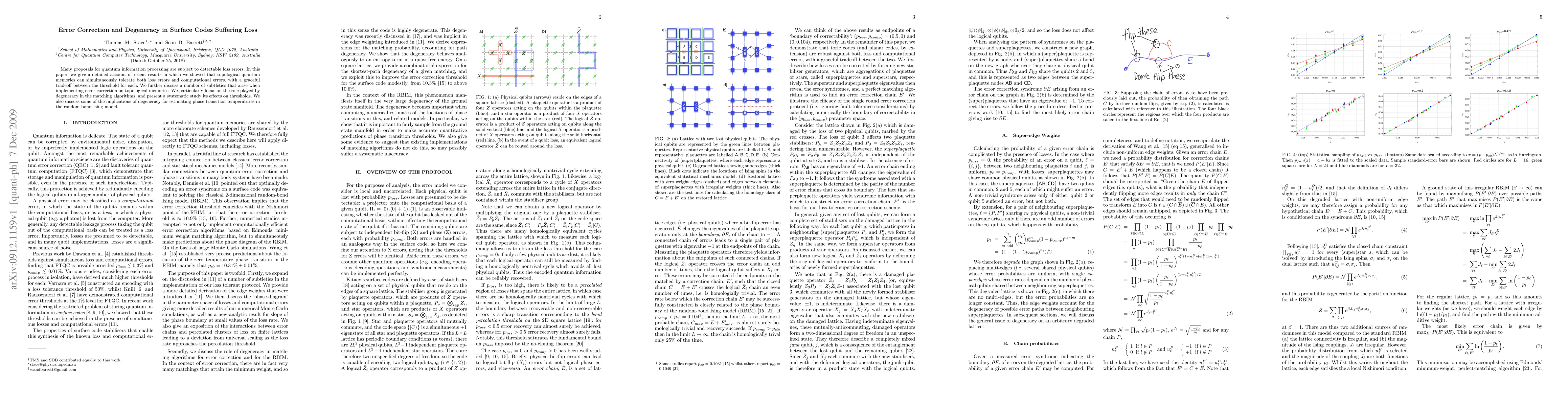 Many proposals for quantum information processing are subject to detectable loss errors. In this paper, we give a detailed account of recent results in which we showed that topological quantum memories can simultaneously tolerate both loss errors and computational errors, with a graceful tradeoff between the threshold for each. We further discuss a number of subtleties that arise when implementing error correction on topological memories. We particularly focus on the role played by degeneracy in the matching algorithms, and present a systematic study its effects on thresholds. We also discuss some of the implications of degeneracy for estimating phase transition temperatures in the random bond Ising model.