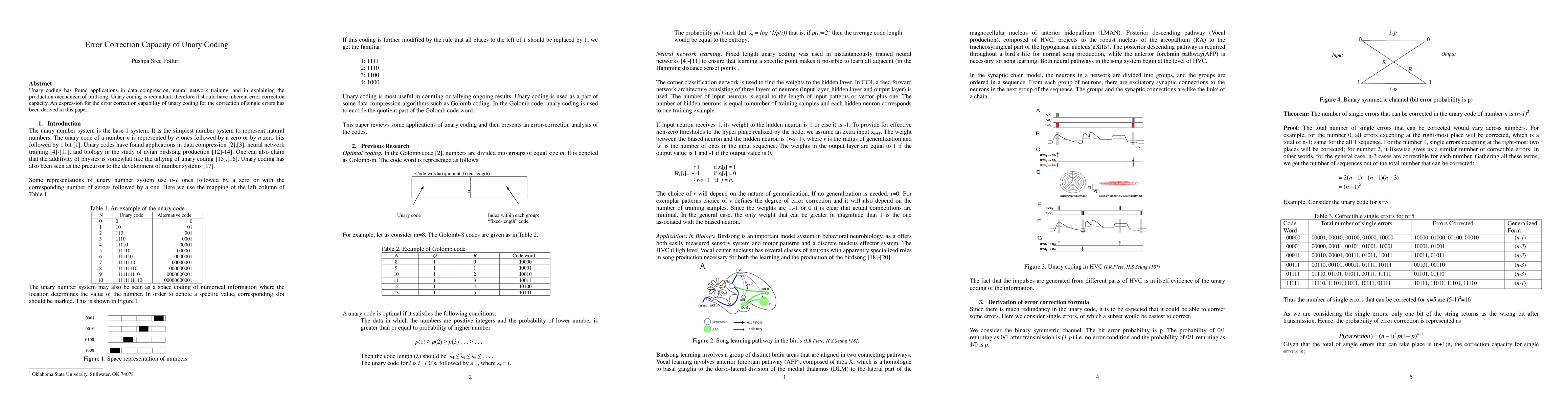 The research derived an expression for the error correction capability of unary coding, providing a theoretical foundation for its applications.