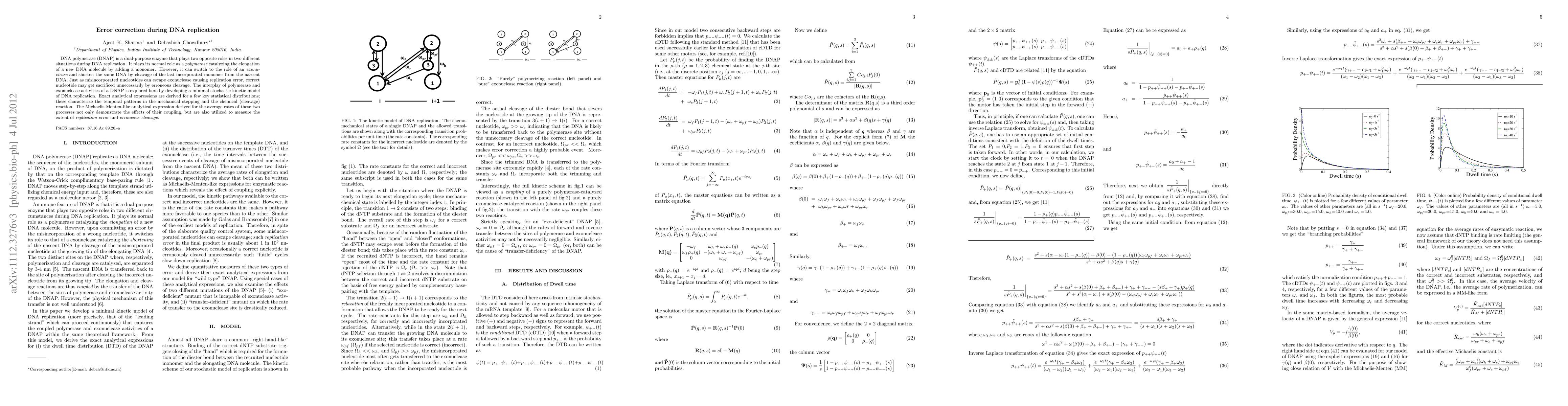 This research explores the dual roles of DNA polymerase during replication, modeling its polymerase and exonuclease activities. Analytical expressions are derived to quantify replication error and erroneous cleavage, highlighting the interplay between these processes.