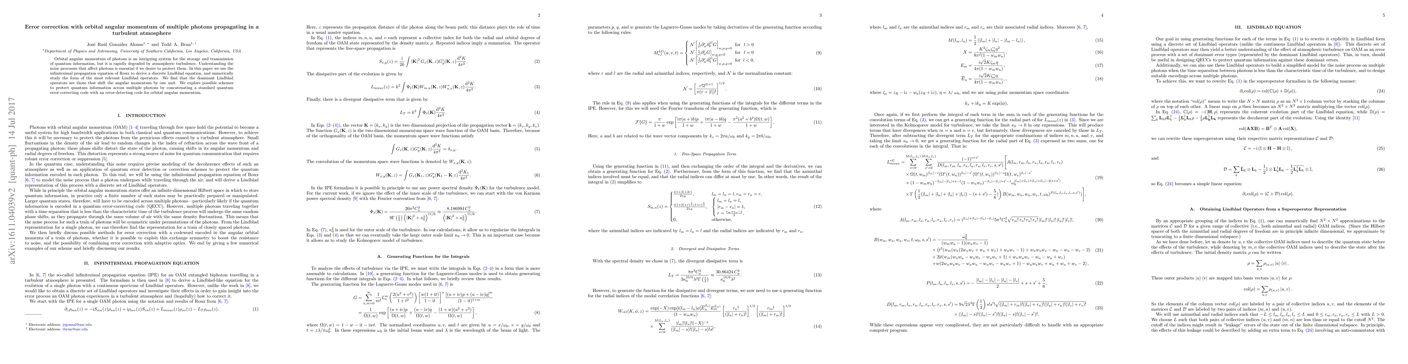 Researchers used a mathematical model to understand how atmospheric turbulence affects photons with orbital angular momentum. They found that a specific type of error correction scheme could protect quantum information across multiple photons.