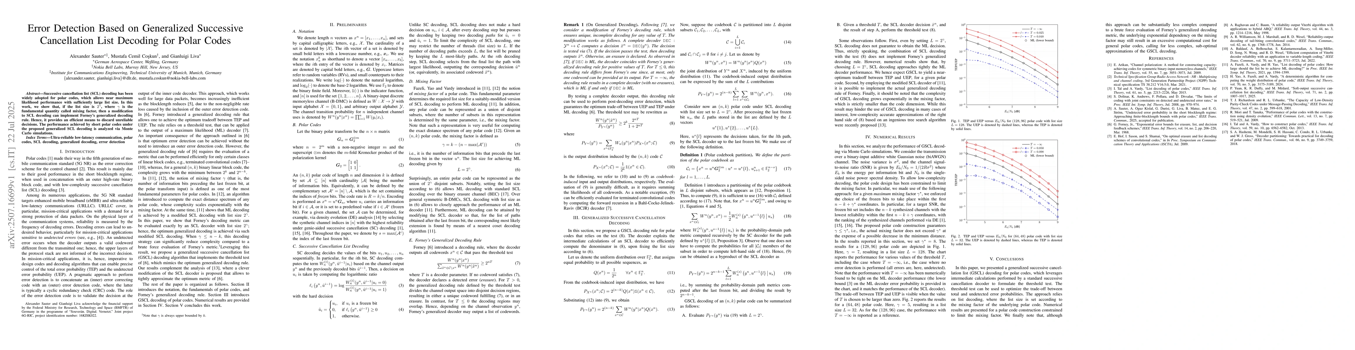 Successive cancellation list (SCL) decoding has been widely adopted for polar codes, which allows near maximum likelihood performance with sufficiently large list size. In this work, we show that, if the list size is $2^\gamma$, where $\gamma$ is the fundamental quantity called mixing factor, then a modification to SCL decoding can implement Forney's generalized decoding rule. Hence, it provides an efficient means to discard unreliable decisions. The performance achieved by short polar codes under the proposed generalized SCL decoding is analyzed via Monte Carlo simulations.