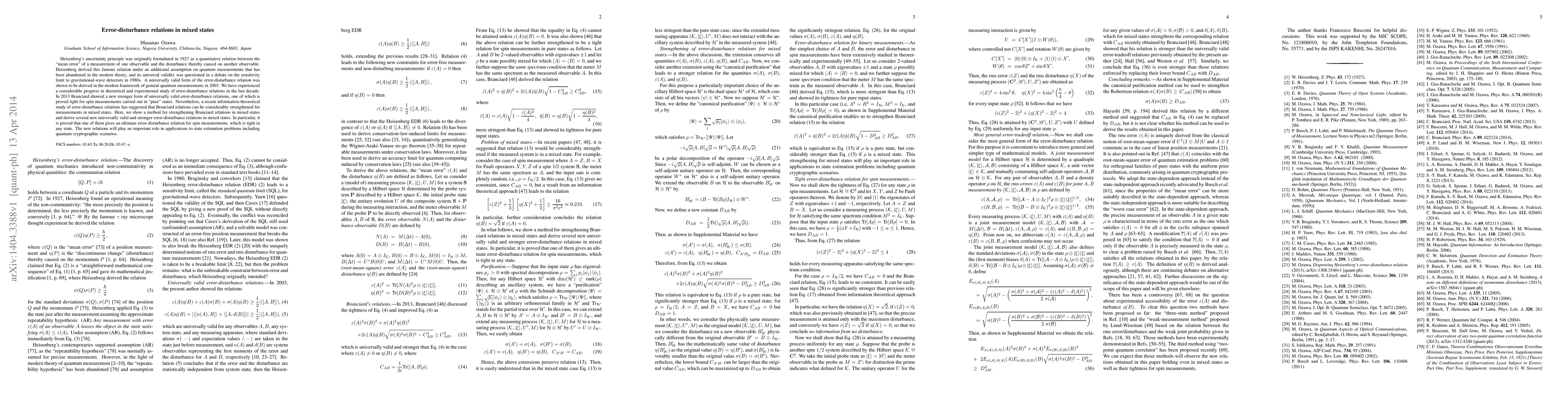This paper presents a novel method to strengthen Heisenberg's uncertainty principle for mixed quantum states, deriving tighter universally valid error-disturbance relations. These new relations will enhance state estimation and quantum cryptographic applications by providing more precise error-disturbance bounds in mixed state measurements.