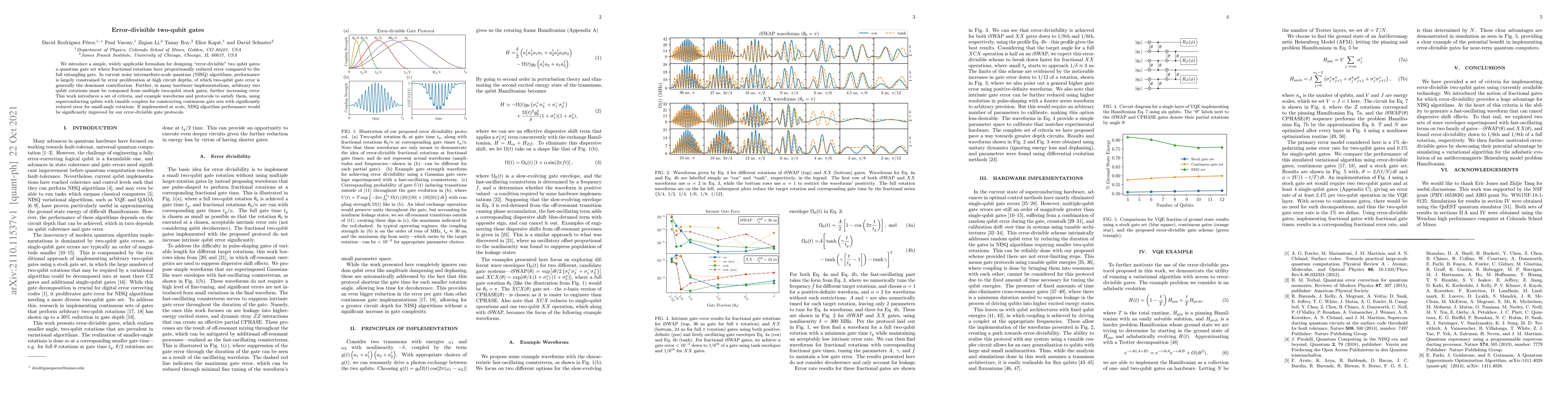 This paper proposes a formalism for designing "error-divisible" two-qubit gates that reduce error proportionally with fractional rotations, aiming to improve performance in noisy intermediate-scale quantum (NISQ) algorithms. The authors introduce criteria and protocols for constructing such gates using superconducting qubits, which could significantly enhance NISQ algorithm efficiency.
