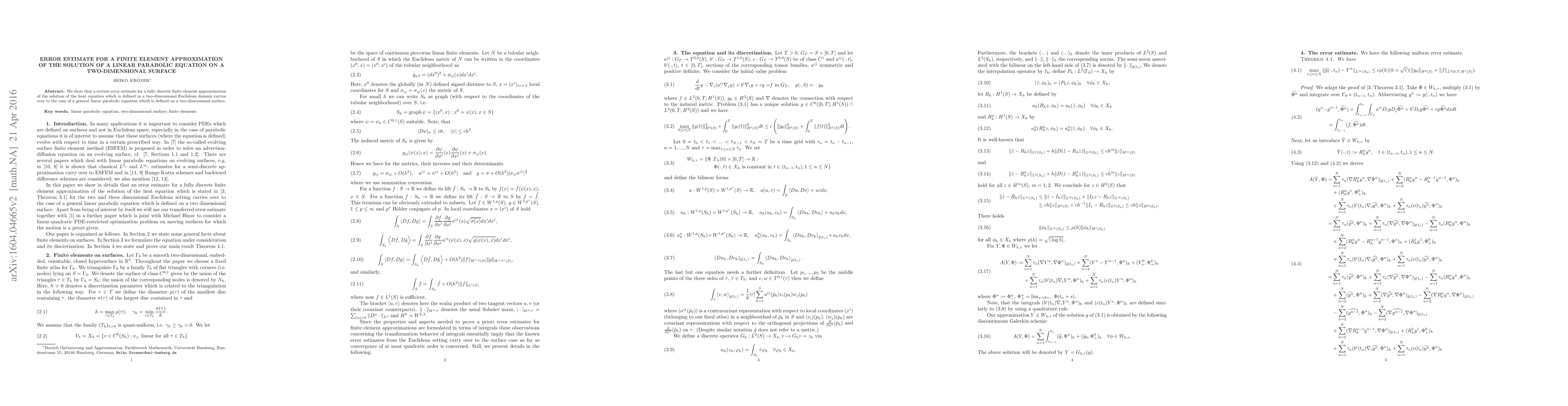 Researchers extend an error estimate for a finite element approximation to linear parabolic equations on two-dimensional surfaces, enabling broader applicability of the method.