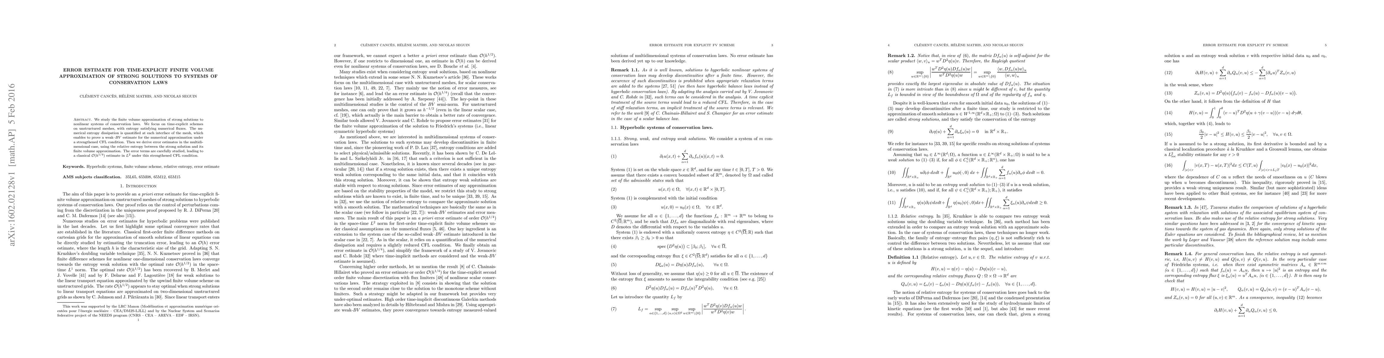 This paper investigates time-explicit finite volume methods for solving nonlinear systems of conservation laws on unstructured meshes, deriving a weak-BV estimate and a classical $h^1/4$ $L^2$ error estimate under a strengthened CFL condition. The analysis focuses on entropy-satisfying numerical fluxes and multidimensional error terms.