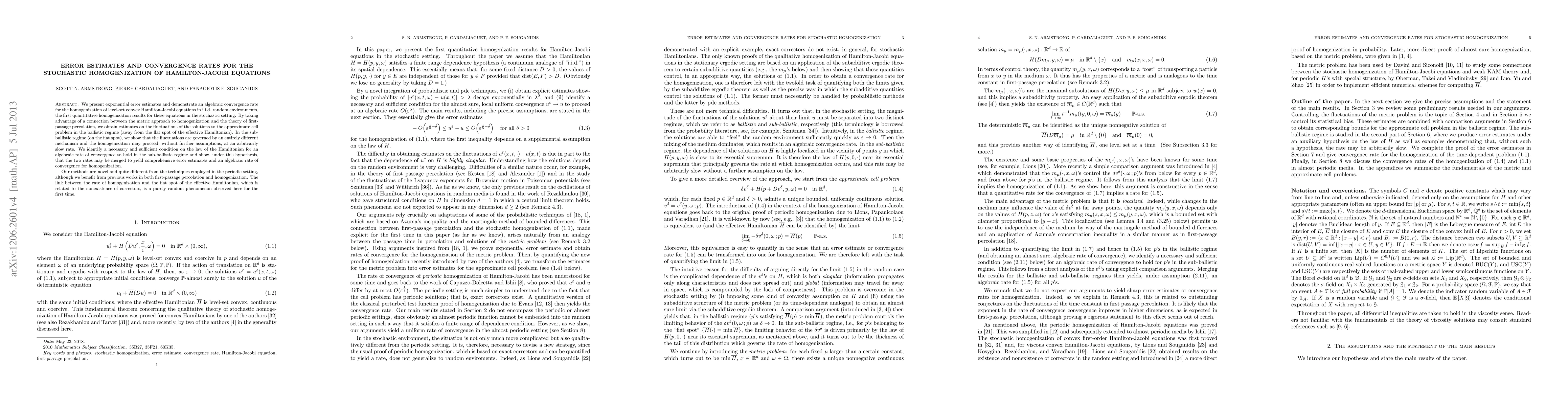 This paper presents exponential error estimates and demonstrates an algebraic convergence rate for the stochastic homogenization of Hamilton-Jacobi equations in random environments. It identifies a condition for algebraic convergence and merges rates to yield comprehensive error estimates.