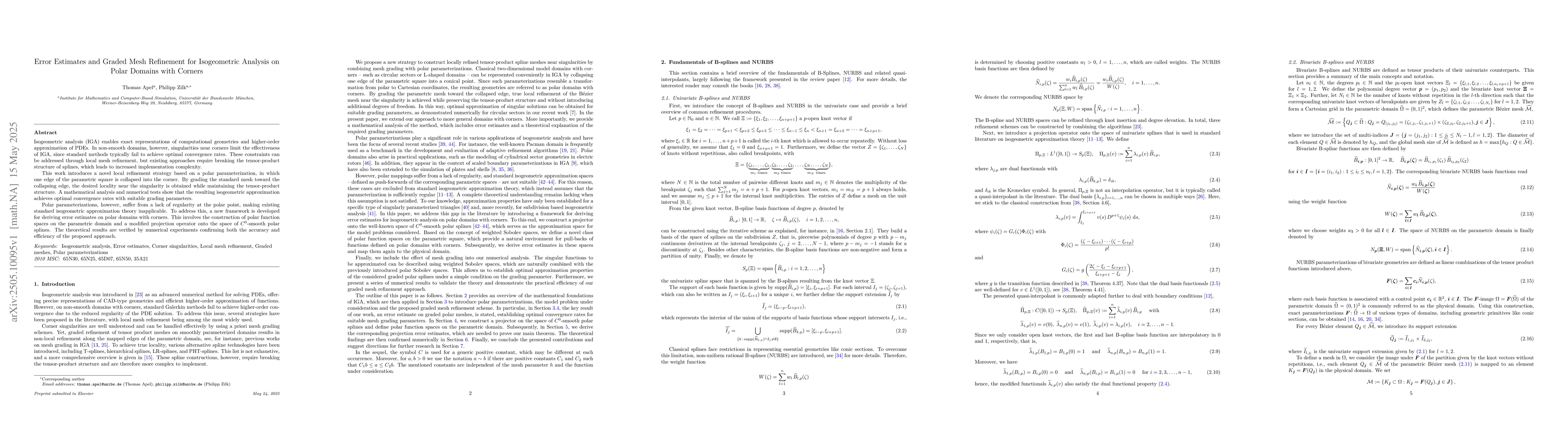 The main technical contribution is a novel local refinement strategy and a new framework for error estimates on polar domains with corners, allowing for optimal convergence rates in isogeometric analysis.