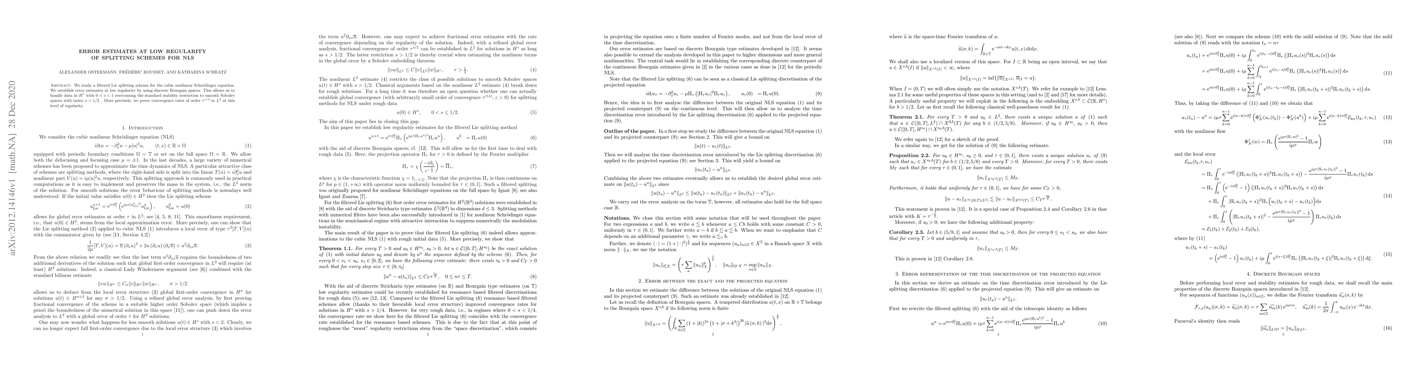 Schr\"{o}dinger equation. We establish error estimates at low regularity by