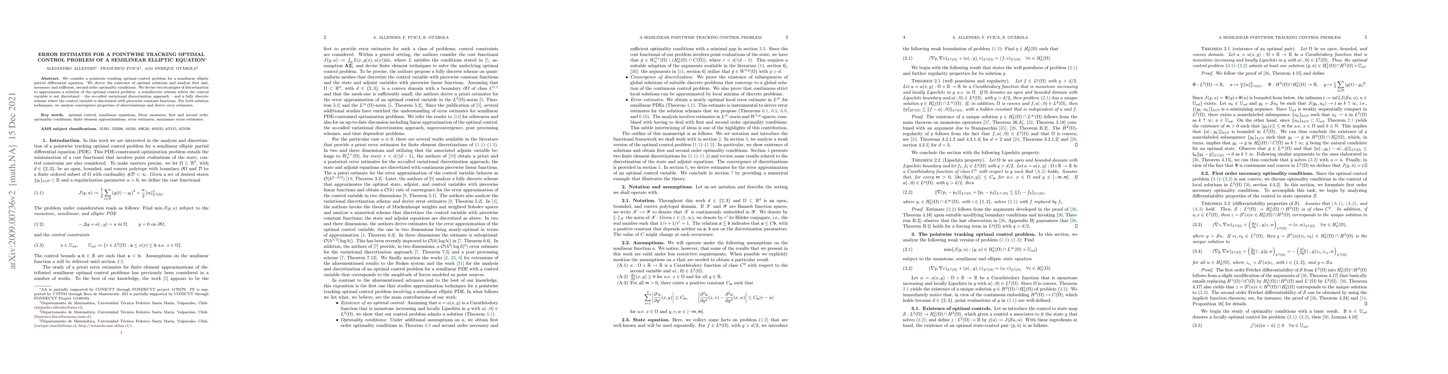 This paper investigates a pointwise tracking optimal control problem for a semilinear elliptic PDE, establishing the existence of optimal solutions and deriving first and second-order optimality conditions. It also presents two discretization methods and analyzes their convergence properties, providing error estimates for both the semidiscrete and fully discrete schemes.