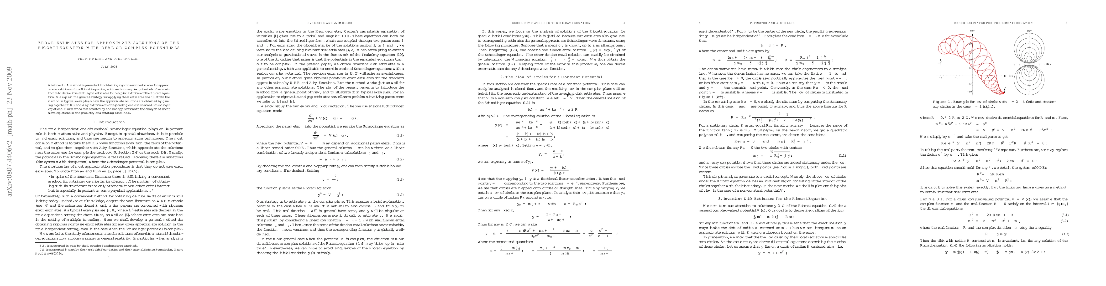 This paper presents a method for deriving rigorous error estimates for approximate solutions of the Riccati equation with real or complex potentials, using invariant region estimates for complex solutions. The method is demonstrated through examples combining WKB and Airy solutions, with applications to linear wave equations in rotating black hole geometries.