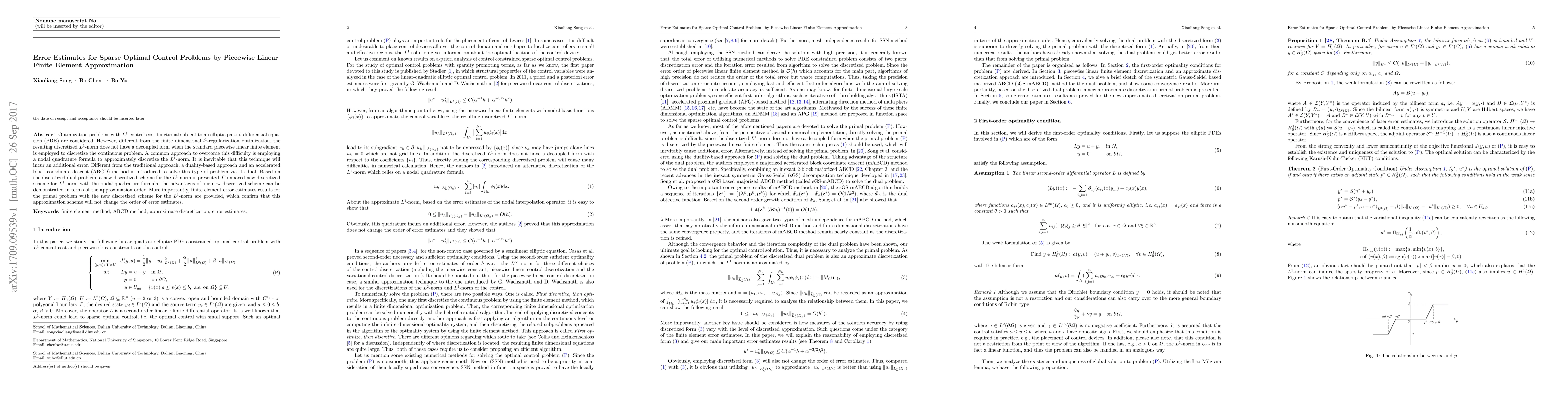 Optimization problems with $L^1$-control cost functional subject to an elliptic partial differential equation (PDE) are considered. However, different from the finite dimensional $l^1$-regularization optimization, the resulting discretized $L^1$-norm does not have a decoupled form when the standard piecewise linear finite element is employed to discretize the continuous problem. A common approach to overcome this difficulty is employing a nodal quadrature formula to approximately discretize the $L^1$-norm. It is inevitable that this technique will incur an additional error. Different from the traditional approach, a duality-based approach and an accelerated block coordinate descent (ABCD) method is introduced to solve this type of problem via its dual. Based on the discretized dual problem, a new discretized scheme for the $L^1$-norm is presented. Compared new discretized scheme for $L^1$-norm with the nodal quadrature formula, the advantages of our new discretized scheme can be demonstrated in terms of the approximation order. More importantly, finite element error estimates results for the primal problem with the new discretized scheme for the $L^1$-norm are provided, which confirm that this approximation scheme will not change the order of error estimates.