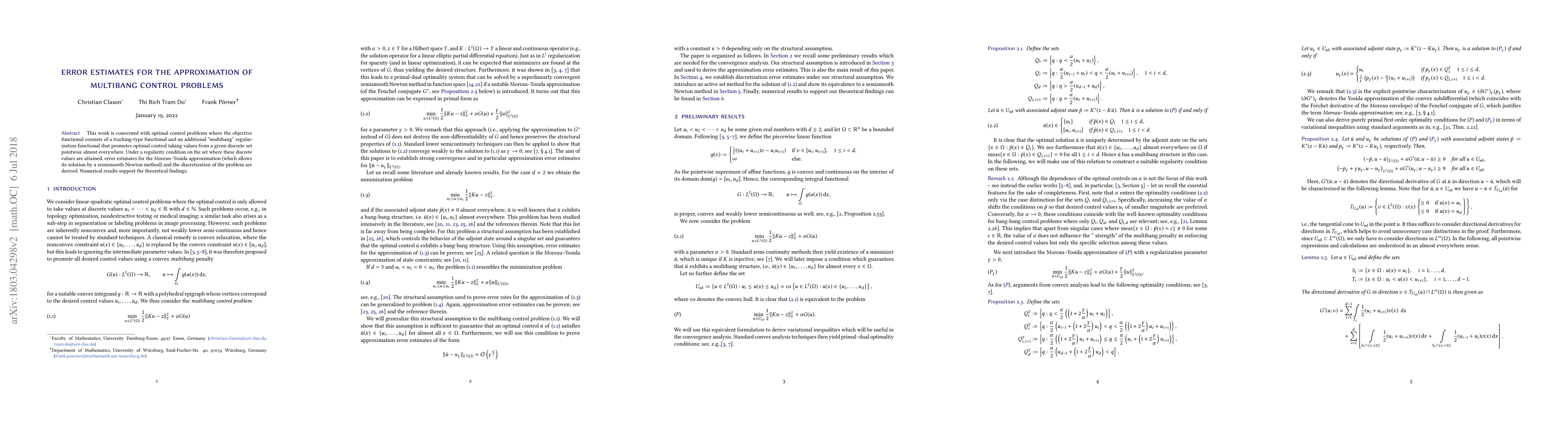 Researchers developed error estimates for approximating multibang control problems, a type of optimization issue that involves discrete values, using the Moreau-Yosida approximation method. The study also showed numerical results supporting these theoretical findings.
