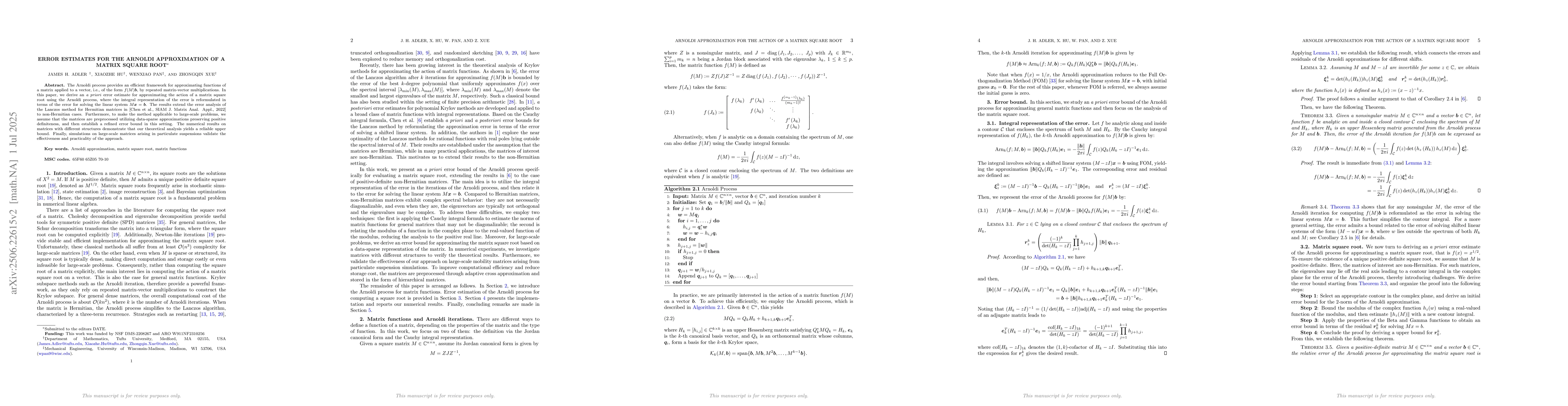 The Arnoldi process provides an efficient framework for approximating functions of a matrix applied to a vector, i.e., of the form $f(M)\mathbf{b}$, by repeated matrix-vector multiplications. In this paper, we derive an \textit{a priori} error estimate for approximating the action of a matrix square root using the Arnoldi process, where the integral representation of the error is reformulated in terms of the error for solving the linear system $M\mathbf{x}=\mathbf{b}$. The results extend the error analysis of the Lanczos method for Hermitian matrices in [Chen et al., SIAM J. Matrix Anal. Appl., 2022] to non-Hermitian cases. Furthermore, to make the method applicable to large-scale problems, we assume that the matrices are preprocessed utilizing data-sparse approximations preserving positive definiteness, and then establish a refined error bound in this setting. The numerical results on matrices with different structures demonstrate that our theoretical analysis yields a reliable upper bound. Finally, simulations on large-scale matrices arising in particulate suspensions validate the effectiveness and practicality of the approach.