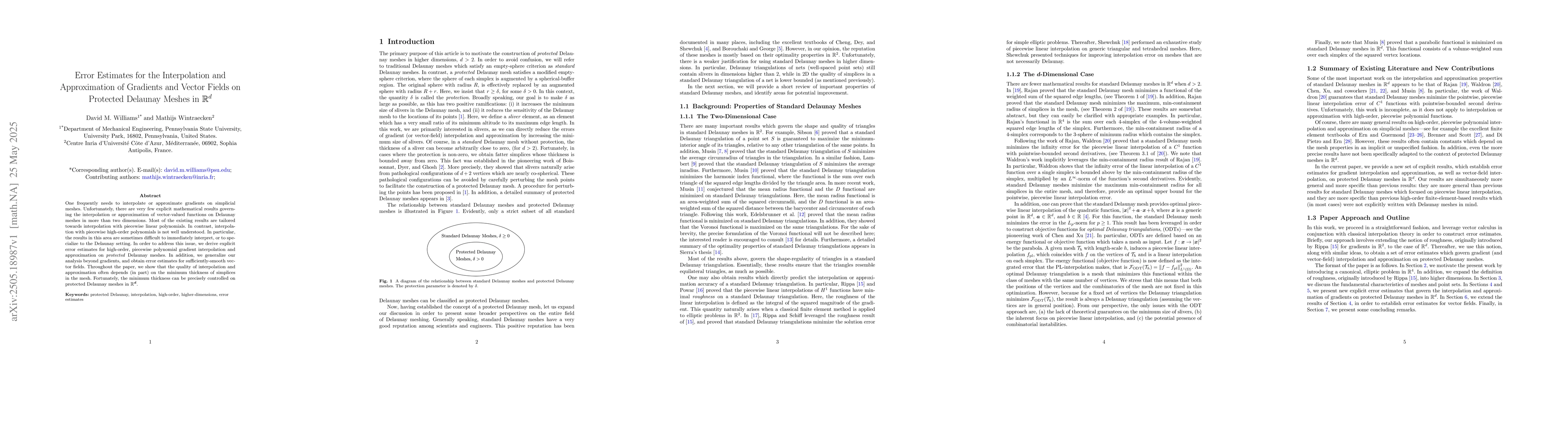 The paper derives explicit error estimates for high-order, piecewise polynomial gradient interpolation and approximation on protected Delaunay meshes, extending the analysis to sufficiently-smooth vector fields.