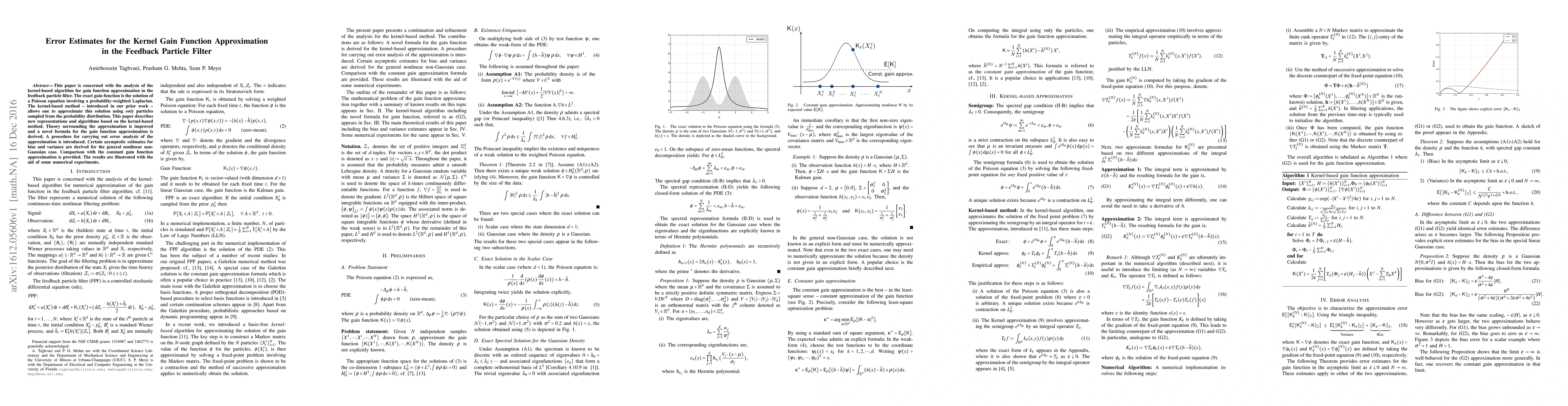 This paper improves theory and provides a novel formula for approximating the gain function in feedback particle filters using kernel-based methods, with implications for error analysis and comparison to constant gain functions.